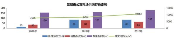【整體供銷存價(jià)】2018年公寓新增86萬(wàn)㎡,同比持平;成交66萬(wàn)㎡,同比下降18%;均價(jià)10661元/㎡,同