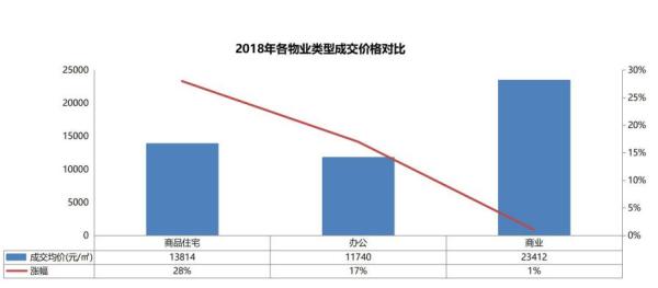 【整體成交價(jià)格】2018年商品住宅價(jià)格總體呈上升趨勢(shì),全年均價(jià)13814元/㎡,均價(jià)比2017年高了3030元/㎡,同比增長(zhǎng)28%