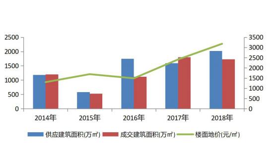【各性質土地供銷價對比】2018年純住宅用地供應6900畝,占比62%,成交5345畝,占比63%,單價623萬元/畝。住宅兼商業性質的地價最高,為1064萬元/畝。