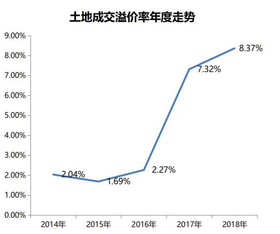 【溢價率】2018年達到8.37%,同比上漲14%;公開拍賣土地競爭激烈。