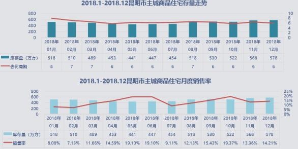 市場供求:2018年昆明商品房隨著近期供應(yīng)加大,供略大于求,年度價格上漲,月度去化穩(wěn)定。