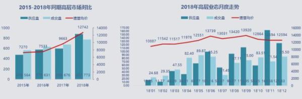 2018年高層住宅供應(yīng)充足,同比往年呈增長態(tài)勢,成交均價起伏波動,保持10000元以上,下半年穩(wěn)中有降。