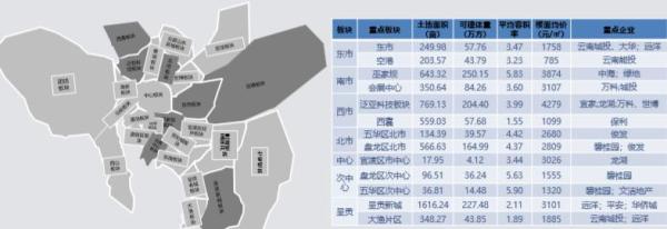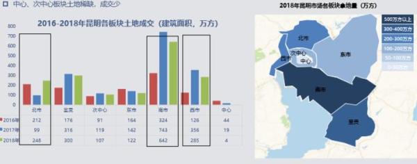 南市區土地成交642萬方,占昆明主城及呈貢成交的37%,其中巫家壩板塊250萬方表現突出;