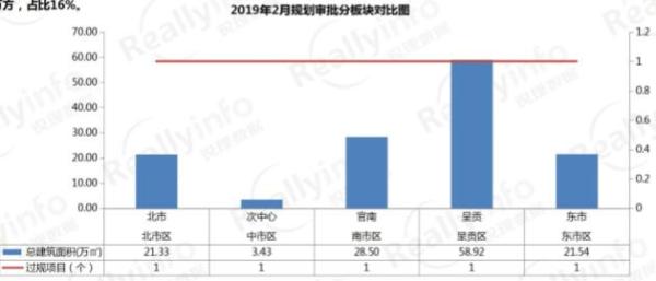 本月除西市區外,其他區域均有項目過規。其中呈貢區過規體量最大,過規建面58.92萬方,占比44%;北市區過規建面 21.33萬方,占比16%;中市區過規建面3.43萬方,占比3%;南市區過規建面28.50萬方,占比21%;東市區過規建面21.54 萬方,占比16%。