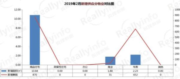 本月新增供應中,商品住宅供應870套,面積10.84萬方;商業供應31套,面積1.80萬方;車庫供應652個,面積2.23萬方; 政策性住宅、辦公物業無新增供應。