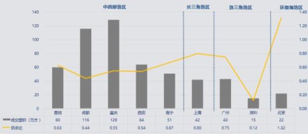 昆明本月成交量處于全國中間水平,中西部成交量相對較大;從供求比方面看,春節過后,市場熱 度不高,除北京外,各個城市供應較小,去庫存,節后熱身中。