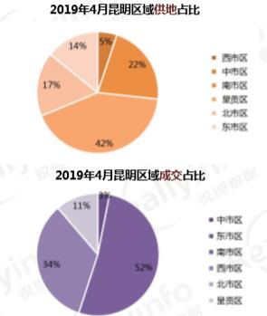4月昆明純住宅用地成交7宗,面積380.08畝,占比62%;