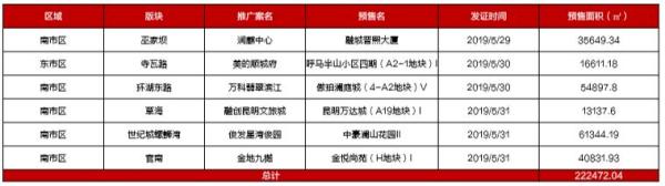 據昆明市房產信息網顯示,本周6個項目取得6張預售證,預售面積約22.24萬㎡