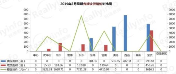 板塊情況:本月東南、滇池、西山和呈貢板塊有土地供應(yīng),供應(yīng)量最多的是西山板塊,為782.34畝;次中心、北市、東市、 官南和呈貢板塊有成交,成交量最多的是呈貢板塊,為453.76畝,東市樓面地價(jià)最高,為7721.28元/㎡ 。