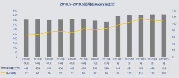 截止目前商業庫存458萬方,庫存量保持高位,庫存壓力大; 庫存依舊保持增長,去化周期達109個月,略有下降。