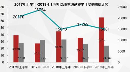 2019年上半年商業市場供應65.12萬方, 同比上升44.91%,市場供應潛力較強;