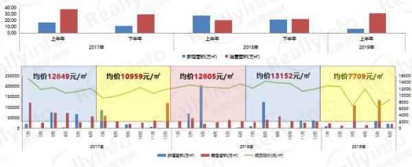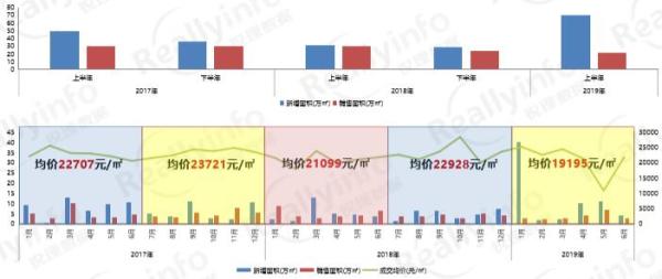 【供銷價】商業投資遇冷,長期供大于求:2019年上半年商業新增量70.20萬㎡,同比上漲129.00%;成交21.91萬㎡,同比下降26.24%;成交均價19195元/㎡,同比下降9.02%。