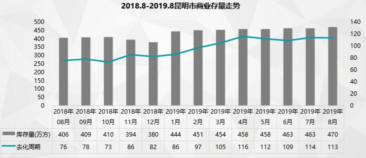 截止目前商業庫存470萬方,庫存量保持高位,庫存壓力大;庫存依舊保持增長,去化周期達113個月,略有下降。