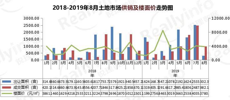 8月昆明商業用地供應5宗,面積56.76畝,占比19%;