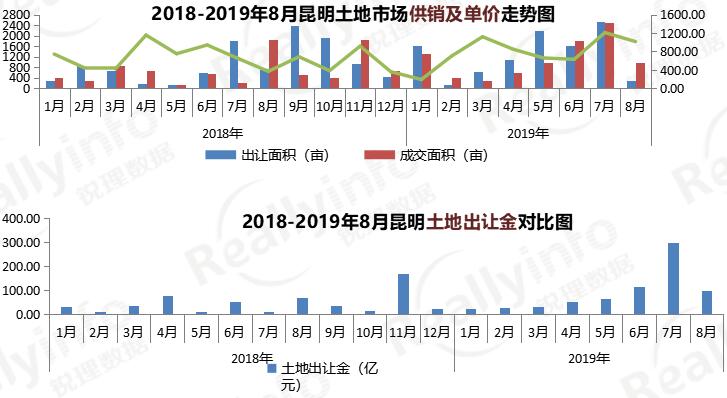 8月昆明純住宅用地供應2宗,面積164.36畝,占比54%;