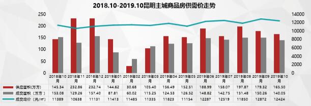 10月商品房市場(chǎng)供應(yīng)下降,商品房供應(yīng)以住宅為主,極少數(shù)商業(yè)量補(bǔ)位,成交量跌價(jià)降狀態(tài)。