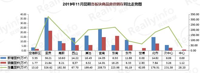 新增:新增面積前三為呈貢、官南和滇池板塊,分別為36.21、24.05和16.45萬方;
