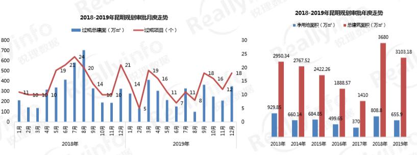 2019年昆明133個商品房項目過規(guī)159次,過規(guī)總建面3103.18萬方。從月度走勢看,項目過規(guī)個數(shù)2019年3、4、9、10、12月較高。