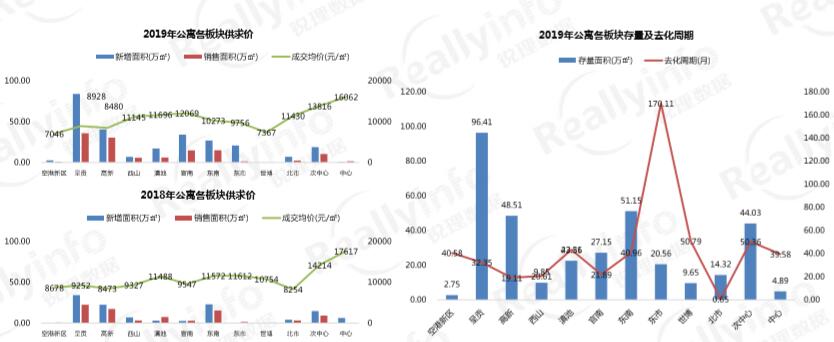 【3.4.3 各板塊公寓供銷存價】呈貢、高新、官南三區市場供銷體量大,去化周期快