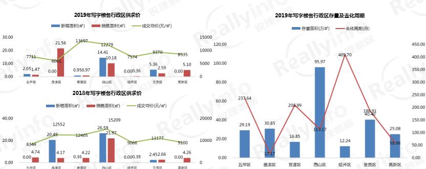 【3.5.5 昆明寫字樓市場供銷價】昆明寫字樓市場持續去庫存化量價仍在下滑