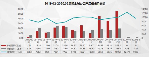 截止到2020年2月29日,昆明市土地交易中心和昆明市國(guó)土資源公示已成交商住辦土地共2宗,成交土地面積10.16萬(wàn)平米,成 交金額3.85億元,平均地價(jià)252.64萬(wàn)元/畝。