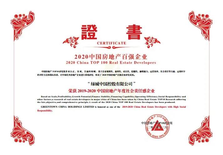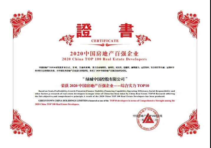 綠城中國憑借優異的綜合力、穩健的發展力、良好的社會力以及領先的產品力,榮獲2020中國房地產“百強企業綜合實力TOP10”“百強企業規模性TOP10”“年度社會責任感企業”等榮譽。這是綠城中國連續第16年榮膺房地產百強企業綜合實力TOP10。同時,峰會今年新設2020中國房地產“產品力優秀企業”榜單,綠城位列榜單第一。