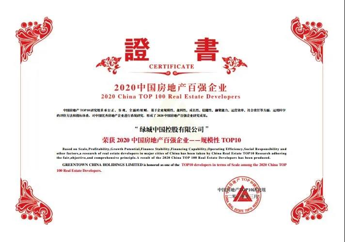 2020中國房地產“百強企業規模性TOP10”