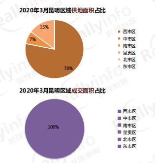3月昆明僅南市區有土地成交。南市區成交1宗,面積106.72畝,占比100%。