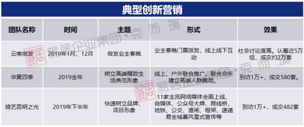 2019年俊發“業主春晚”轟動整個市場,并取得優異成績。云南金科、云南華夏、昆明悅宸營銷團隊以新項目的落成開展創新營銷思考與執行,其中,金科·集美玉溪以品牌發布會、明星演唱會強勢發聲,夯實品牌項目在玉溪市場社會傳播基礎,后續又以12場集美12峰系列高定活動,先后嫁接燕之屋、星巴克、陸虎、麥德龍等品牌,持續為項目引流,提高來訪與成交量。