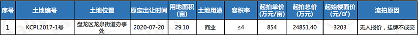 土地流拍:本月1宗土地流拍。