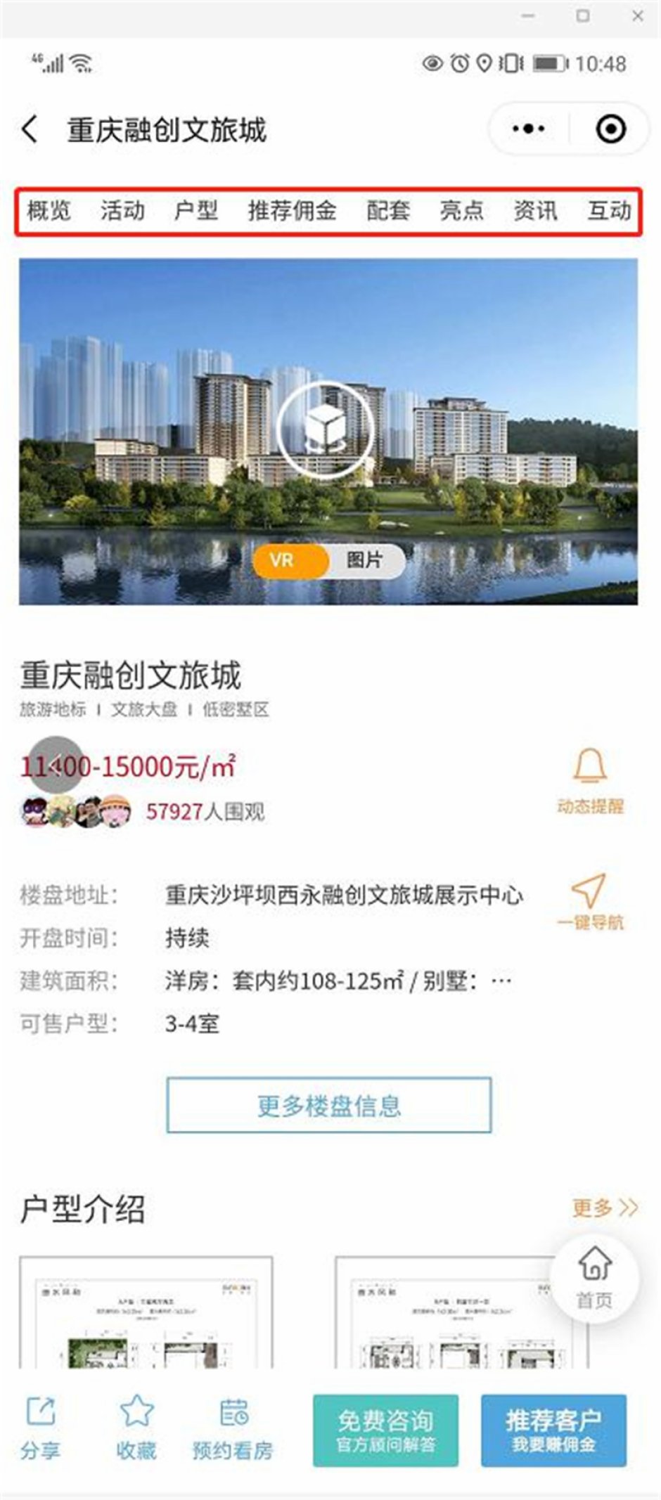 目前,不少房企線上看房平臺仍缺少視頻、VR看房等3D模式,仍以海報等平面展示為主,導致用戶體驗不盡如人意。而此次融創西南幸福通升級,覆蓋融創西南區域重慶、四川、廣西、云南、貴州五省市百余個項目臻品房源,開發出樓盤線上展廳、戶型詳解、線上售房部、營銷活動、在線咨詢、掃碼簽到、預約到訪、在線認購等模塊,具備線上看房、VR帶看、線上預約和認購等功能,讓用戶足不出戶即可查看中意樓盤,一站式完成咨詢、預約和購買。