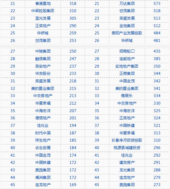 招商蛇口、新城控股、金地集團、中國金茂、陽光城、綠城中國、金科集團、旭輝集團、中南置地、正榮集團