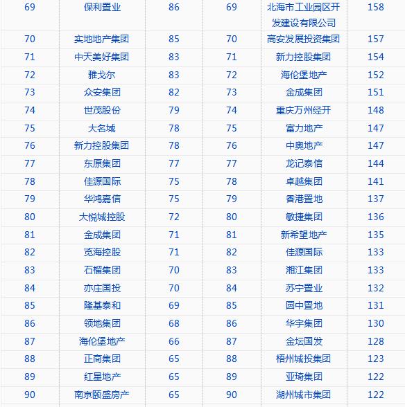 新希望地產、金輝集團、越秀地產、時代中國、仁恒置地、建業地產、寶龍地產、弘陽地產、海倫堡、首創置業