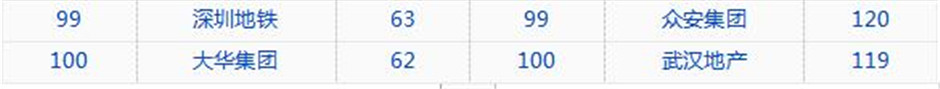 新希望地產、金輝集團、越秀地產、時代中國、仁恒置地、建業地產、寶龍地產、弘陽地產、海倫堡、首創置業