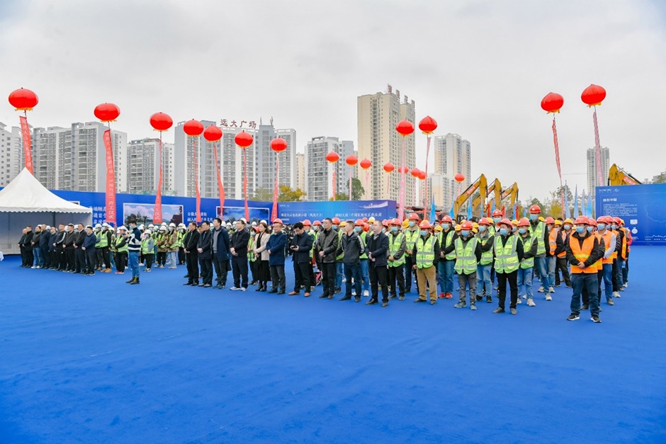 融創中國董事會主席孫宏斌,融創中國執行董事、執行總裁兼西南區域集團總裁、環球融創會展文旅集團副董事長商羽等出席奠基儀式