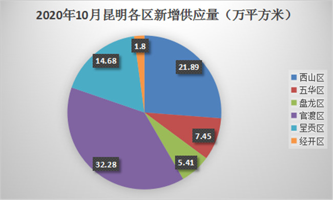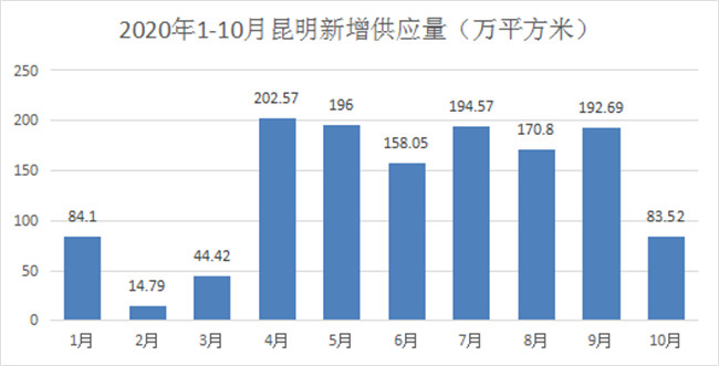 2020年1-10月昆明主城新增供應量情況