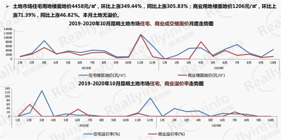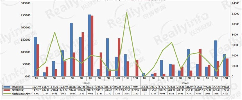 2019-2020年10月土地市場供銷及樓面價走勢圖