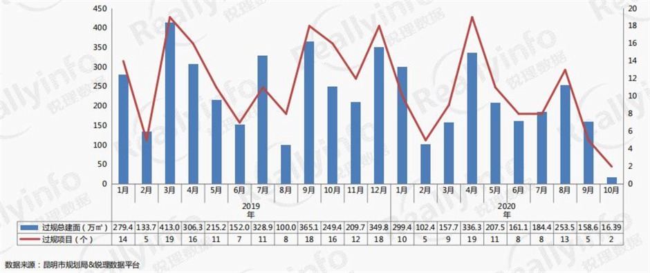 本月昆明2個商品房項目過規2次,過規總建面16.39萬方,環比下降89.67%,同比下降93.43%。