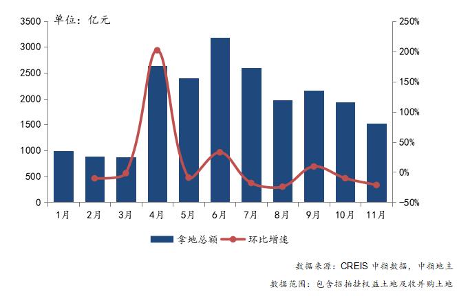 1.1-11月拿地同比增長13.8%,11月拿地規模再減少