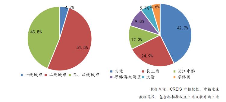 圖:2020年1-11月50家代表房企拿地面積城市等級、區域分布情況