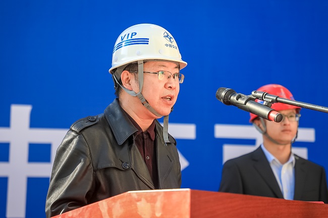 中交南亞總部大廈封頂儀式現場項目代表上臺致辭
