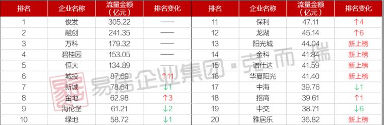 企業、排名順序不變。俊發穩中取勝,融創多方發力,來勢洶涌,恒大郊縣文旅大爆發,業績漲幅最大。