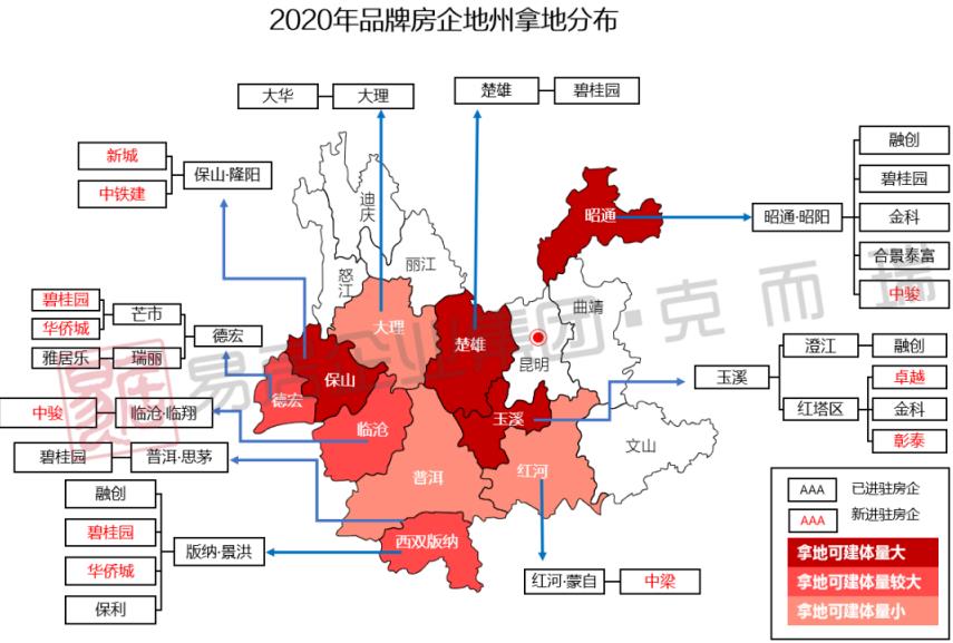 保山、昭通、玉溪、楚雄成為房企重點布局方向,新城、融創、碧桂園、中梁等品牌房企積極下沉地州。