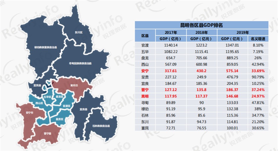 昆明近郊三區縣中土地成交與供應量做大的是安寧,安寧土地銷售額占三區縣銷售總額78%,是近郊房地產開發的主要區域
