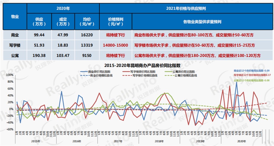 【住宅價格趨勢】昆明住宅市場銷量下降明顯,供求比持續上行,價格相對19年平穩微漲。預計未來住宅市場價格會 進入調整階段,呈現平穩或者下降趨勢。