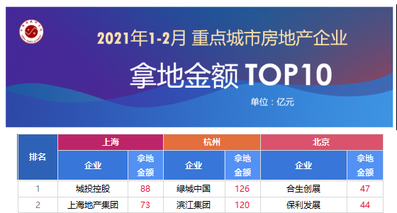 從重點(diǎn)城市拿地金額TOP10房企來看,龍頭房企多城齊發(fā)力。保利發(fā)展、中海地產(chǎn)、綠城中國、招商蛇口出現(xiàn)在2個(gè)城市的1-2月拿地總額TOP10榜單中,在多個(gè)城市齊發(fā)力,與企業(yè)的全國化戰(zhàn)略布局相契合。其中,綠城中國拿下了杭州1-2月拿地總額冠軍,拿地優(yōu)勢(shì)顯著。濱江集團(tuán)持續(xù)深耕大本營杭州,拿下杭州1-2月拿地總額亞軍。