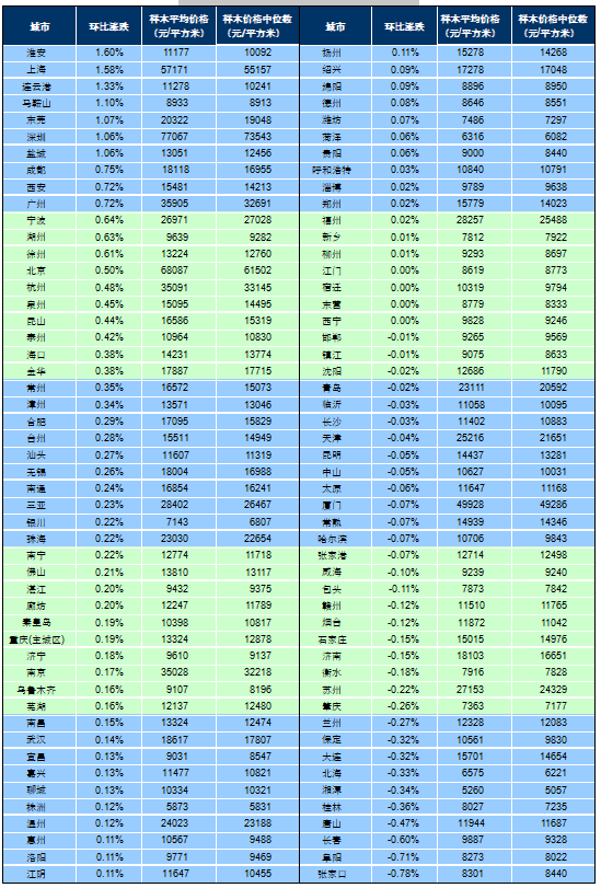 2021年2月,二手住宅價格環(huán)比上漲的城市個數(shù)為63個,較上月增加6個。具體來看,淮安、上海等7個城市環(huán)比漲幅超1.0%;西安、廣州等7個城市漲幅在0.5%(含)-1.0%之間;杭州、泉州等37個城市漲幅在0.1%(含)-0.5%之間;紹興、綿陽等12個城市漲幅均在0.1%以內(nèi)。江門、宿遷、東營、西寧4個城市二手住宅價格均與上月持平。