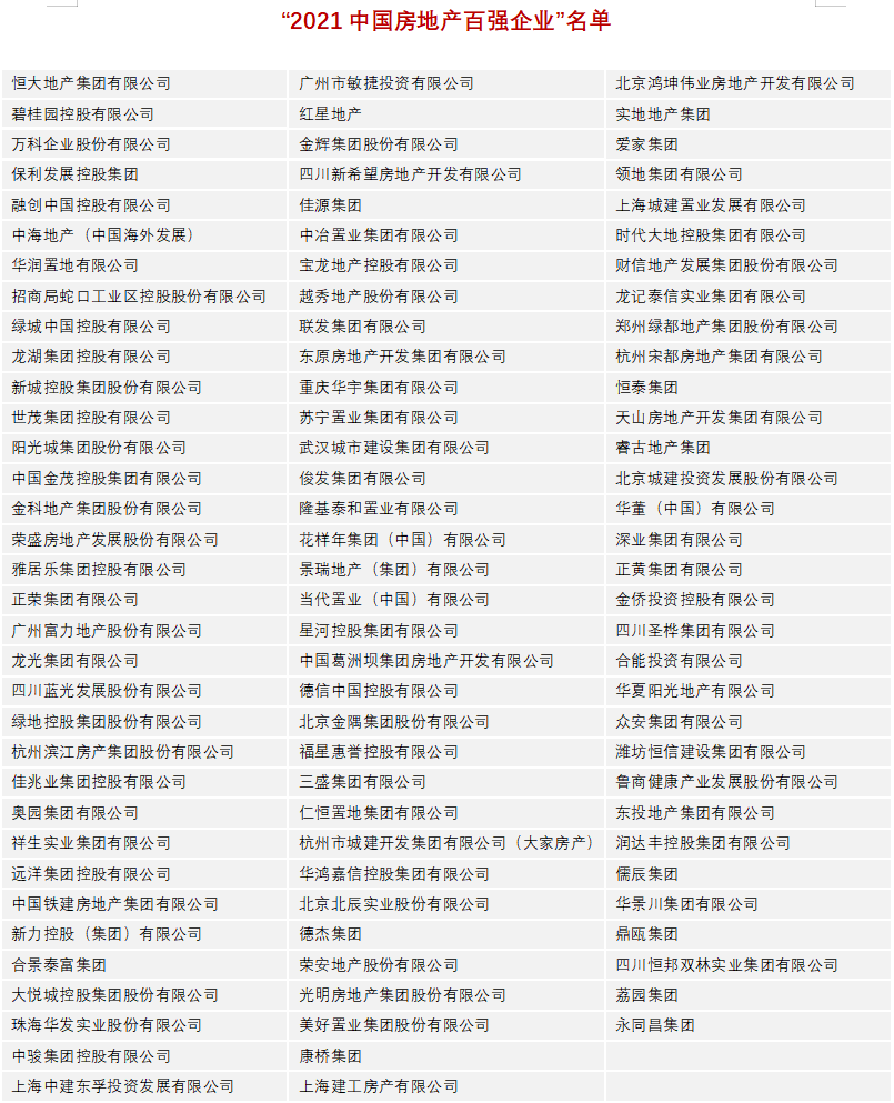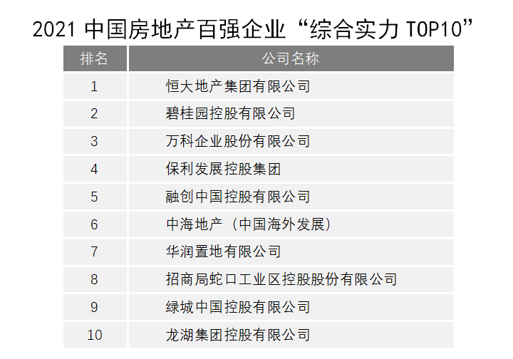 中國房地產(chǎn)TOP10研究組在百強企業(yè)研究的基礎上,基于對企業(yè)規(guī)模性、盈利性、成長性等方面的深入研究,評價產(chǎn)生了2021中國房地產(chǎn)百強企業(yè)“綜合實力TOP10”、“規(guī)模性TOP10”、“盈利性TOP10”、“成長性TOP10”、“穩(wěn)健性TOP10”、“融資能力TOP10”、“運營效率TOP10”、“年度社會責任感企業(yè)”和“年度扶貧標桿企業(yè)”。