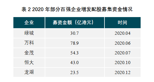 百強企業(yè)積極拓展股權(quán)融資渠道,通過赴港上市、增發(fā)配股、引入戰(zhàn)投等方式補充資金。一方面,非上市百強企業(yè)加速上市節(jié)奏,募集資金多用于項目開發(fā)和債務償還。另一方面,百強企業(yè)分拆旗下多元板塊上市,在擴大母公司權(quán)益,降低負債水平的同時,探索新的利潤增長點,改善企業(yè)現(xiàn)金流。2020年,百強企業(yè)分拆業(yè)務板塊包含物業(yè)、商業(yè)、文旅等,特別是物業(yè)板塊。