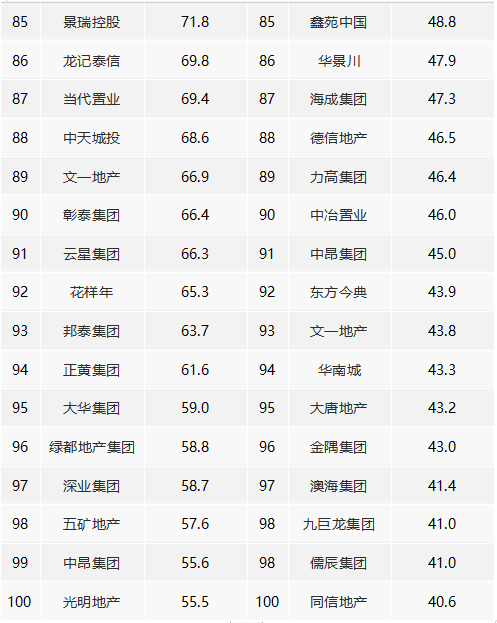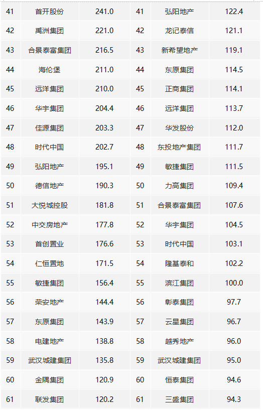 1、5家房企超千億,TOP100房企銷售額均值為307.8億元。